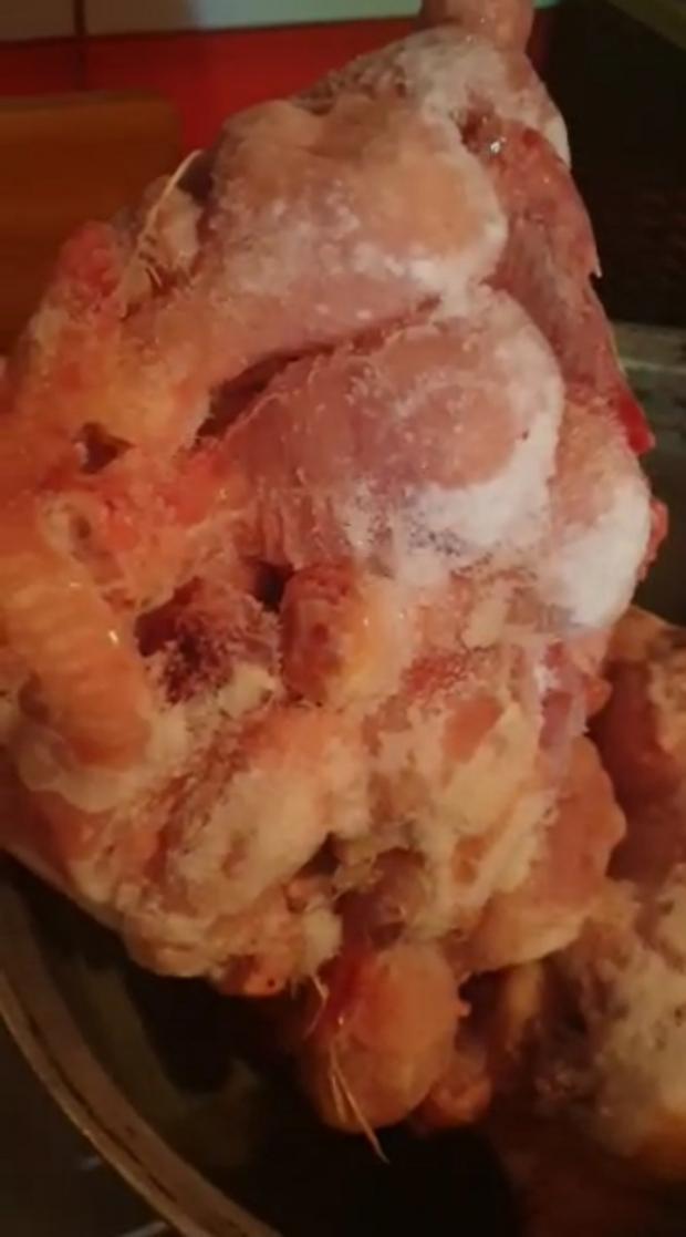 Aceasta a cumpărat două pungi de măruntaie de pui congelate. Când s-a apucat să prepare carnea pentru câinele său a descoperit un burete de vase într-una din pungile achiziționate.