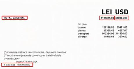 În ediţia din această seară Mihai Gâdea a prezentat sumele plătite de domnul Boc pentru a merge 5 minute la ONU în locul preşedintelui Băsescu, chiar în anul în care salariile şi pensiile erau tăiate din cauza crizei economice. Acesta a plătit sute de mii de dolari pentru cazare, diurnă, transport şi diverse alte lucruri.