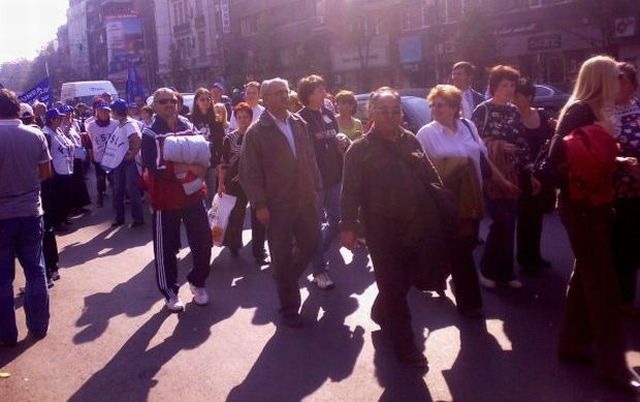 Deranjaţi au fost locuitorii Capitalei, care s-au nimerit la Piaţa Romană în jurul prânzului. ?Ai dracu mitingişti, cum au blocat ei circulaţia!?, spune o femeie, traversând în grabă trecerea de pietoni. Autobuzele şi maşinile au paralizat, pentru a face loc şirului de dascăli nemulţumiţi de condiţiile de muncă.