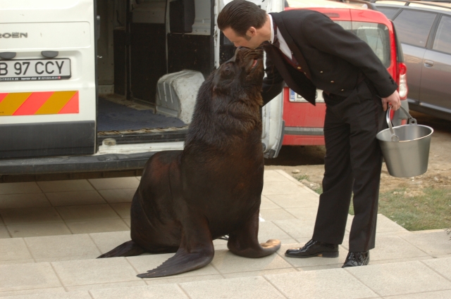 Ajutată de dresorul lui Cecil, Simona Gherghe a reuşit chiar să îl hrănească pe simpaticul invitat care a dovedit că este foarte prietenos...şi că se dă în vânt după aplauze.