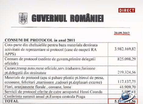 Şi în 2011, consumul de protocol din regimul Emil Boc a crescut, ajungând la puţin peste 5.000.000 lei. Cea mai mare parte din bani, aproape 4.000.000 lei s-au dus la cota-parte din cheltuielile pentru baza materială destinată activităţii de reprezentare şi protocol. Restul banilor au fost alocaţi pentru şedinţe de guvern, cazare şi mese festive pentru delegaţii din străinătate, dar şi pentru materiale de protocol, flori sau summitul anual pentru Europa Centrală.