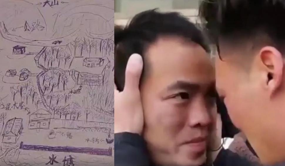 Harta pe care acesta a desenat-o, care includea o școală, o pădure de bambus și un mic iaz, i-a ajutat pe poliţişti să găsească locul de unde provenea mama lui. După realizarea unor teste ADN, cei doi au putut fi reuniţi.