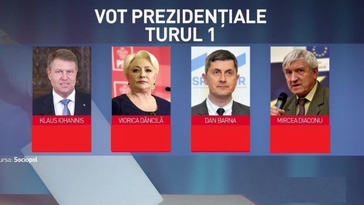 Sondajul Sociopol îl arăta câștigător pe Klaus Iohannis (42%), urmat de Viorica Dăncilă (21%), Dan Barna (10%), Mircea Diaconu (10%), Theodor Paleologu (7%), Alexandru Cumpănașu (5%), Ramona Ioana Bruynseels (3%) și Kelemen Hunor (1%).