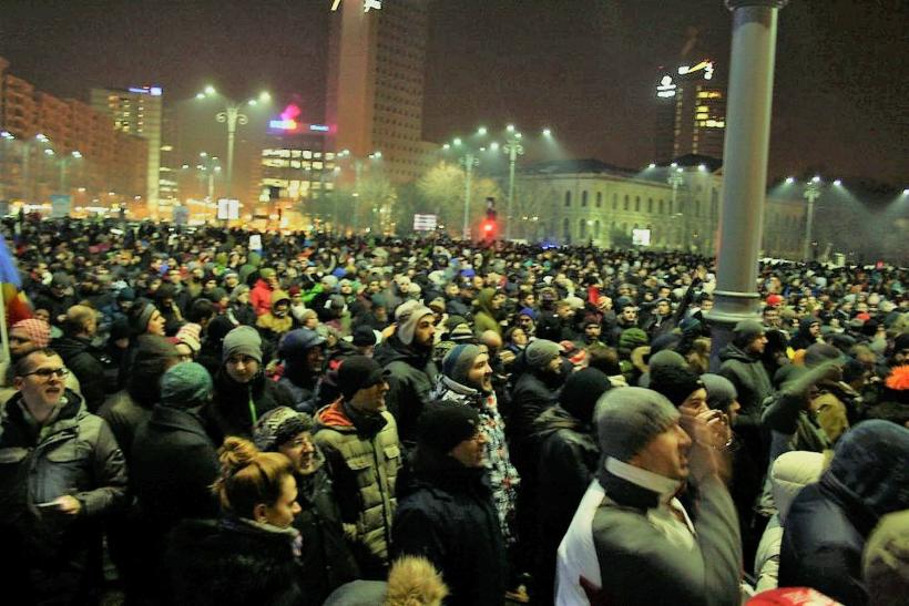 Și în această dimineață, circa 1.000 de oameni protestează în faţa Palatului Victoria, nemulţumiţi de decizia Guvernului privind modificarea Codurilor Penale prin Odonanţă de Urgenţă.