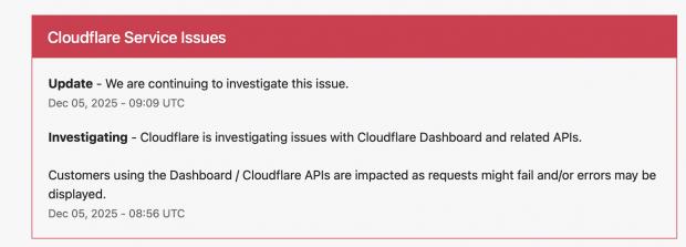 Cloudflare a confirmat incidentul pe pagina sa oficială de status, anunțând că se confruntă cu probleme care afectează atât panoul de administrare (Cloudflare Dashboard), cât și API-urile asociate.