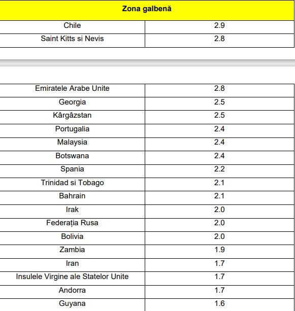 - din zona roșie, în urma scăderii incidenței: Chile, Botswana, Bahrain şi Saint Kitts şi Nevis;