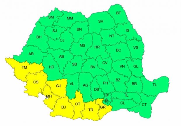 Sunt afectate județele Timișoara, Caraș-Severin, Mehedinți, Gorj, Dolj, Olt, Teleorman și Giurgiu.