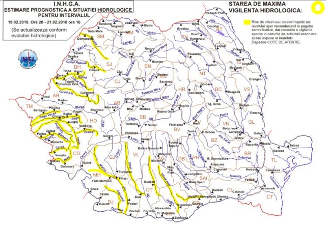Conform avertizării, în zonele menţionate există riscul creşterii de niveluri şi debite cu depăşirea cotelor de atenţie.