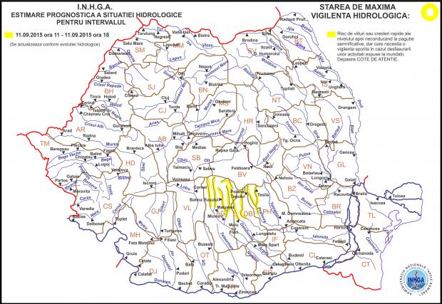Potrivit avertizării, in intervalul menţionat, pe râurile din bazinele superioare ale râurilor Argeş (judeţele Argeş şi Dâmboviţa) şi Ialomiţa (judeţele Dâmboviţa şi Prahova) se vor semnala scurgeri importante pe versanţi, torenţi şi pâraie, viituri rapide pe râurile mici cu posibile efecte de inundaţii locale şi creşteri de debite şi niveluri pe unele râuri din bazinele hidrografice menţionate, cu posibile depăşiri ale cotelor de atenţie.