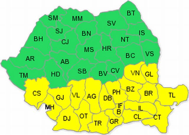 Atenţionarea este valabilă în intervalul 10 martie, ora 22:00 - 11 martie, ora 20:00.