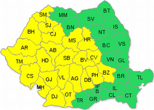 "Instabilitatea atmosferică va fi accentuată în vestul şi sud-vestul ţării precum şi în zonele de deal şi de munte din restul teritoriului. Cantităţile de apă vor depăşi local 30 l/mp şi izolat 60 l/mp în Banat, Crişana, Transilvania, Oltenia şi în nordul Munteniei", precizează Administraţia Naţională de Meteorologie.