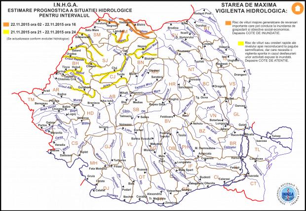 O altă avertizare, de această dată cod GALBEN, este valabilă până la ora 24, în aceleaşi zone din Maramureş, dar şi pe râurile din judeţele Cluj, Sălaj, Bihor, Hunedoara, Arad, Alba şi Bistriţa Năsăud.