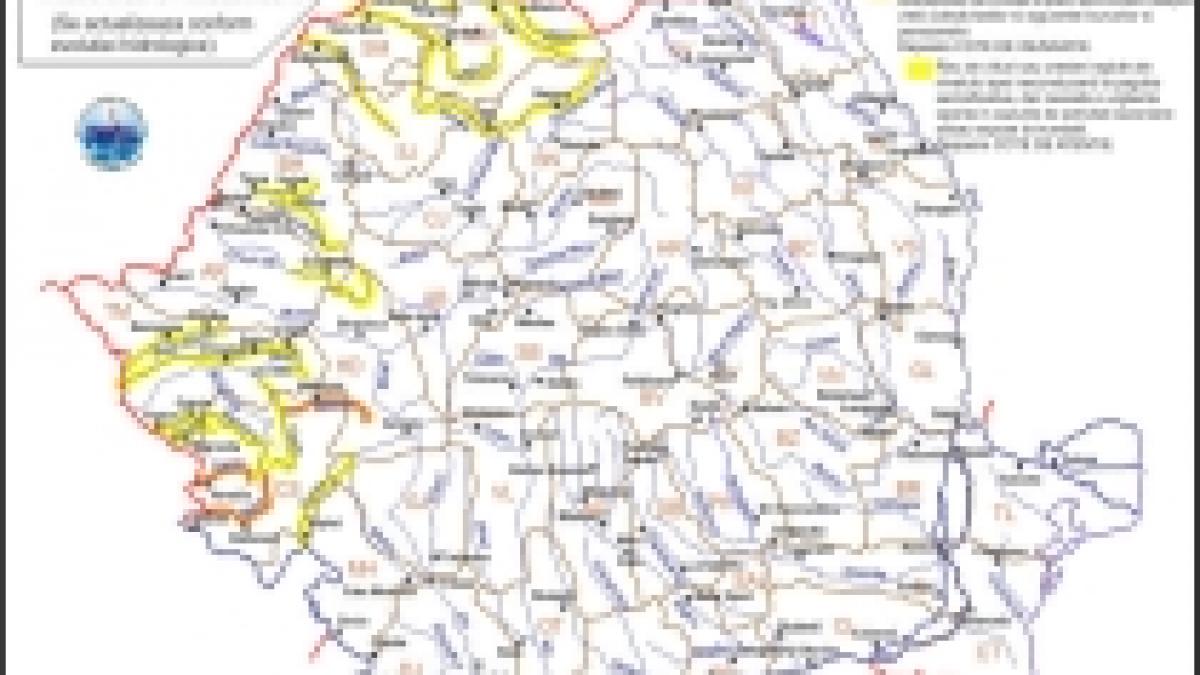 Tot sub avertizarea de cod galben se află şi râurile din bazinele hidrografice Vişeu, Iza, Tur, Lăpuş, Someş, Crasna, Timiş, Bârzava, Moraviţa şi Cerna, aferente judeţelor Maramureş, Satu Mare, Bistriţa-Năsăud, Cluj, Sălaj, Timiş şi Caraş-Severin.