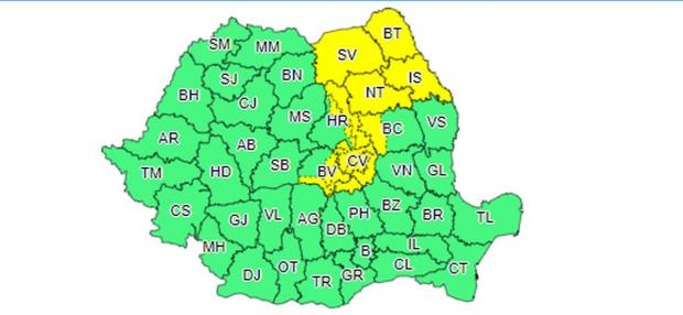 În intervalul menționat, în jumătatea nordică a Moldovei, precum și în zona de munte a județelor Harghita, Bacău, Covasna și Brașov, va continua să plouă, iar cantitățile de apă vor depăși local 20...30 l/mp.