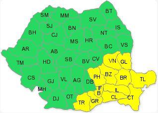 În judeţele Teleorman, Giurgiu, Ilfov (inclusiv Municipiul Bucureşti), Călăraşi, Ialomiţa, Prahova, Brăila, Buzău, Vrancea, Galaţi, Tulcea şi Constanţa va fi caniculă, temperaturile maxime vor fi de 35-36 de grade Celsius, iar disconfortul termic va fi accentuat.
