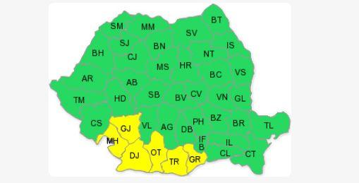 În vestul şi sudul Olteniei, precum şi în sudul Munteniei va mai ninge, cantităţile de precipitaţii vor depăşi local 10 l/mp şi se va depune strat proaspăt de zăpadă.