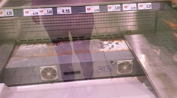 • folosirea unor vitrine frigorifice cu acumulare masivă de gheață, cu rafturile neigienizate, cu urme de lichide alimentare, praf, rugină, mucegai și insecte