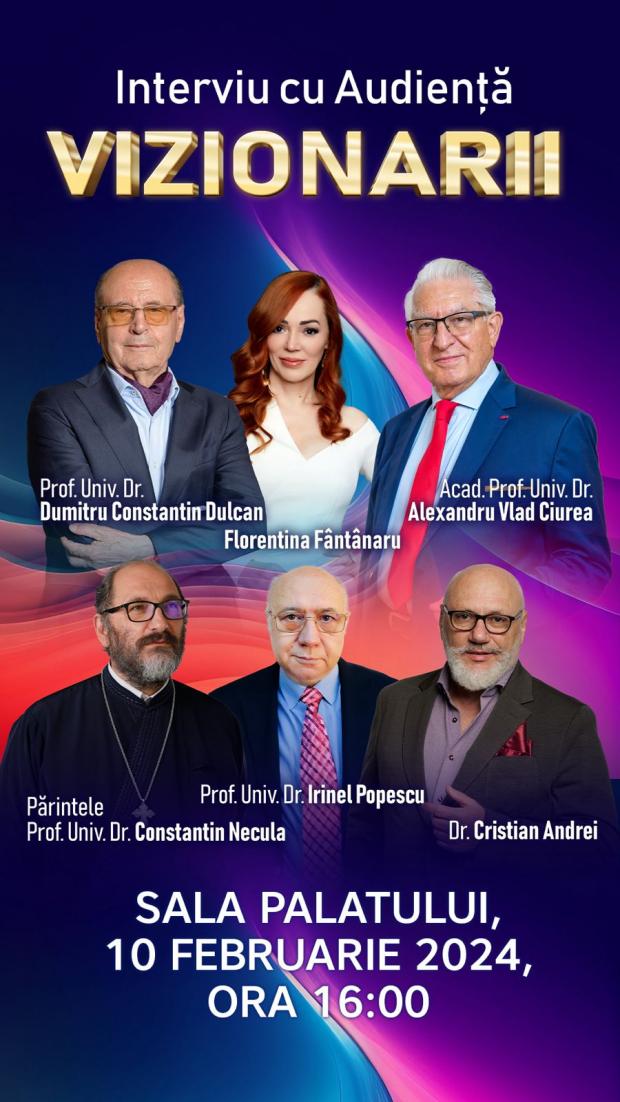 Pe 10 februarie cu o zi înainte să împlinească 50 de ani de viață, Florentina Fântânaru vă invită la cel mai important interviu cu audiență! Sala Palatului va fi la dispoziția voastră! Veniți să trăim împreună prima ediție VIZIONARII!