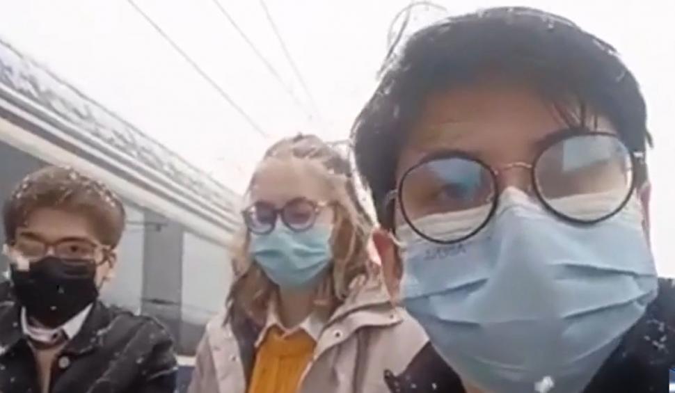 „Nouă ne este frig! Apă mai aveam doar 0.5 litri la şapte persoane. Am ieșit o parte din noi afară ca sa putem să facem acest live fără să deranjăm vagonul. Este foarte frig şi în vagon nu doar afară, ninge, nu ştim când o să ajungem acasă.