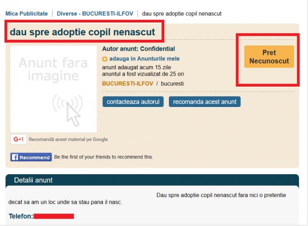 Utilizatorii unui site de anunțuri de mică publicitate au descoperit cu stupoare un anunț care avea ca subiect adopția unui copil. A unui copil încă nenăscut.
