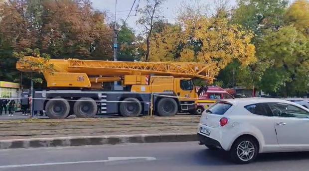 Este necesară această a doua macara pentru că, din informațiile pe care le avem, un utilaj va trebui să susțină anumite părți componente din acel bloc care au fost dislocate în urma exploziei.