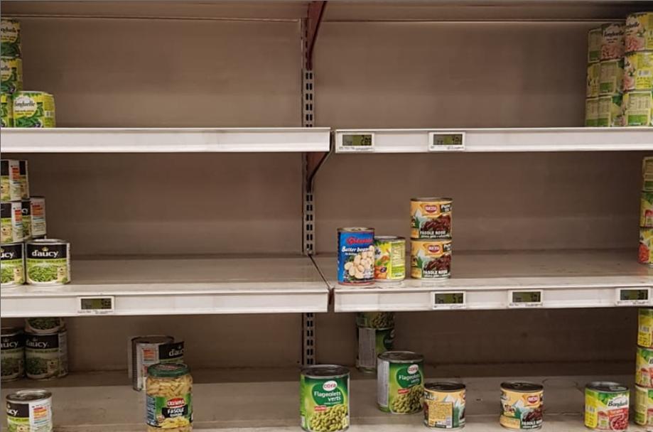 În supermaketuri, rafturile cu faină, ulei și conserve s-au golit imediat.