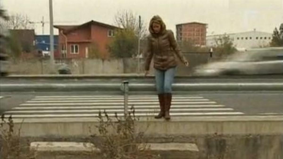 Tot în Capitală, o trecere de pietoni, culmea, nu improvizată, ci avizată de autorităţi, are într-un capăt trotuarul şi în celălalt un parapet metalic.
