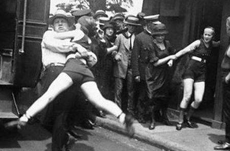 Fotografia de mai jos a fost realizată în Chicago, SUA, în 1922. O femeie a fost arestată pentru că purta un costum de baie care îi dezvăluia prea mult din corp.