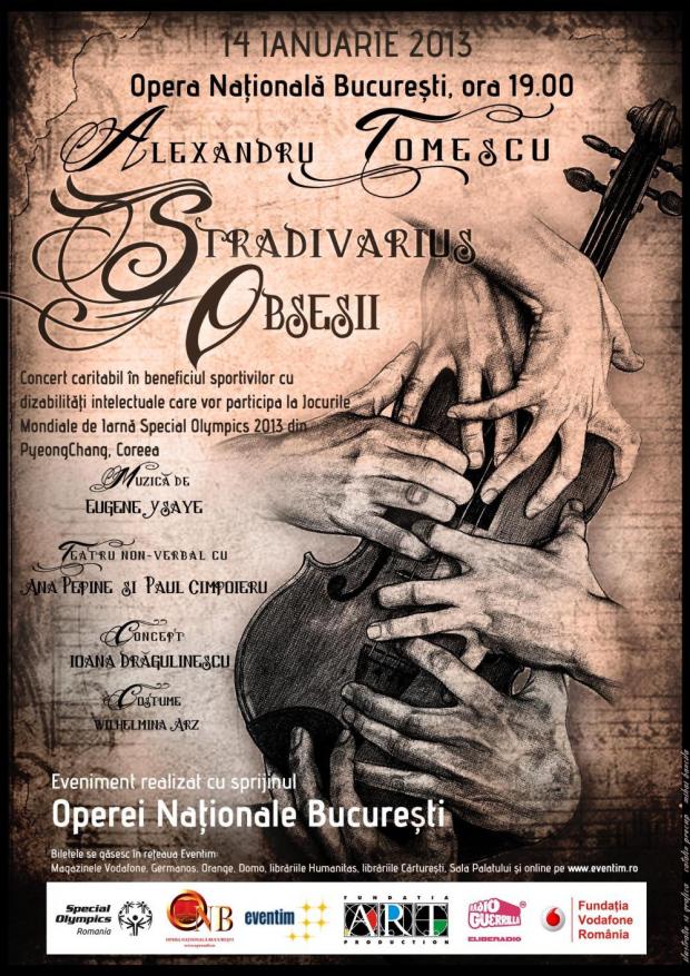 Premiat pe toate marile scene ale lumii, Alexandru Tomescu va urca luni, 14 ianuarie 2013, de la ora 19, alături de actorii Ana Pepine şi Paul Cimpoieru, pe scena Operei Naţionale din Bucureşti, într-un concert de 70 de minute cu muzica celor şase Sonate pentru vioară solo de Eugène Ysaÿe.