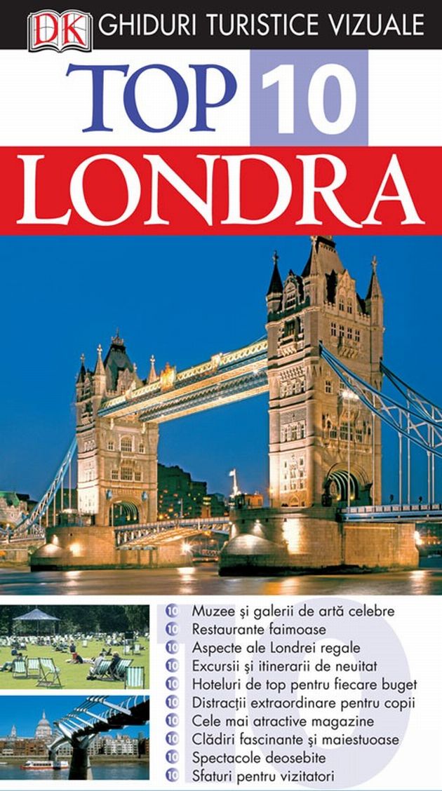 Londra este un oraş elegant în care modernul şi clasicul se îmbină perfect şi una dintre cele patru mari capitale mondiale ale modei (pe lângă Paris, Milano şi New York). Cu Top 10 Londra veţi ajunge să descoperiţi cu uşurinţă obiectivele istorice şi turistice ale unuia dintre cele mai importante centre politice, financiare, culturale şi artistice ale lumii. Ghidul este structurat în aşa fel încât să vă uşureze, pe cât posibil, vizionarea tuturor obiectivelor importante ale acestei capitale şi să vă ajute în organizarea timpului şi a traseelor, astfel ca Londra să devină pentru dumneavoastră dintr-un oraş necunoscut, unul pe care-l puteţi cunoaşte ca-n palmă.