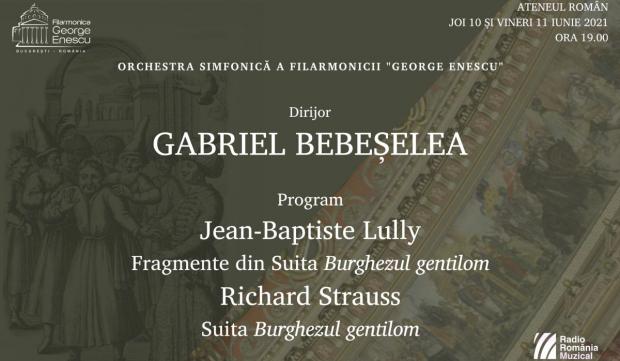 "Conceptul concertelor din 10 și 11 iunie e centrat pe una dintre cele mai cunoscute comedii din literatura mondială: Burghezul gentilom de Molière. Prima lucrare este suita din muzica originală de scenă compusă în 1670 de cel căruia îi datorăm invenția orchestrei moderne, compozitorul Regelui Soare - Jean-Baptiste Lully. Alături de Molière, a realizat o mulțime de piese care au schimbat cursul teatrului, muzicii și al baletului, dar Burghezul gentilom rămâne perla colaborării dintre cei doi", apreciază dirijorul Gabriel Bebeșelea.
