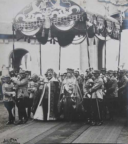"Bătrânul Ferekide, ca preşedinte al Senatului, şi Orleanu, preşedintele Camerei, au înaintat cu coroanele noastre, generalul Lupescu cu mantia Majestăţii Sale, şi generalul Popovici cu a mea” a scris Regina Maria.