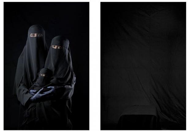 Dacă în primele imagini protagonistele sunt îmbrăcate „normal” şi zâmbesc, în ultimele poze ele apar îmbrăcate în burka, purtând vălul islamic pe faţă, iar zâmbetele lor se transformă în tristeţe.