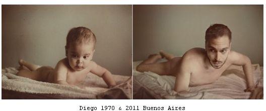 Fotografiile recente sunt realizate intenţionat în acelaşi loc, iar protagoniştii sunt îmbrăcaţi cu haine asemănătoare cu cele din copilărie şi pozaţi în aceleaşi ipostaze.