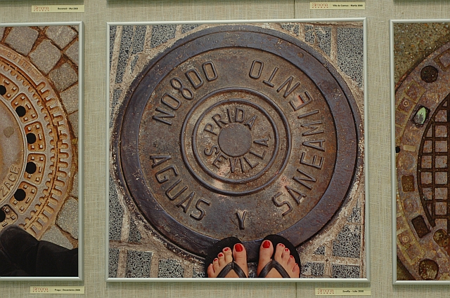 "Fotografii eseu", aşa caracterizează Mihai Oroveanu, directorul MNAC, lucrările Simonei Şerban. Artista fotografiază gurile de canal care spun poveşti despre oaşele pe care le străjuiesc. "Ele ţin locul unei mărturii care poate fi ghicită din câteva fraze şi prezenţa insolită a unor vârfuri de pantof." spune Oroveanu. Chiar dacă priveşte în jos, Simona Şerban spune povestea unor oraşe ca Malmo din Suedia, Barcelona, Paris, Cannes sau Craiova şi Bucureşti. "Una din cele mai dificile probe e să te rezumi la un metru pătrat şi să vezi în el povestea" declară artista.