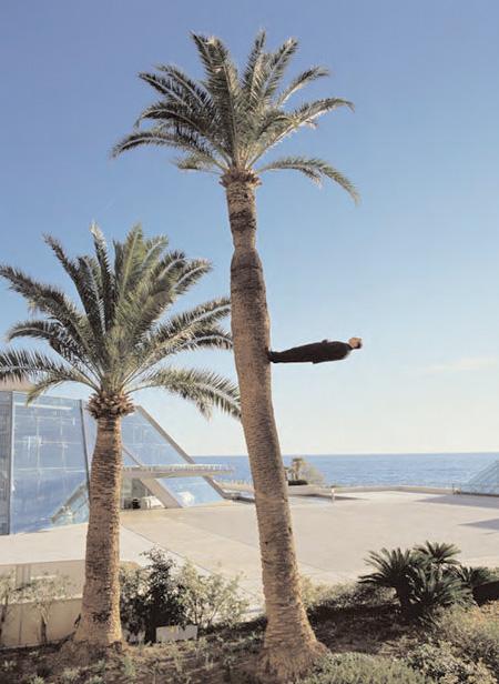 Imaginile din galeria foto de mai jos îl arată în locaţii unice, dar şi în poziţii unice. Artistul escaladează palmieri, merge pe apă şi se scufundă până la epave.