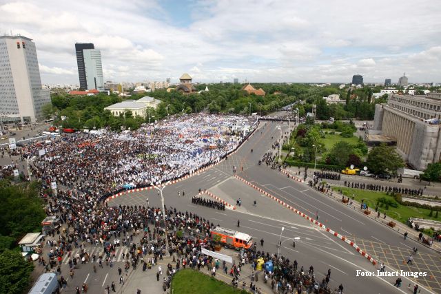 "Zeci de mii de angajaţi din România au organizat cea mai amplă demonstraţie din ultimii ani, în semn de protest faţă de măsurile de austeritate decise de Guvern. Peste 60.000 de sindicalişti din toată ţara, reprezentând toate categoriile profesionale, s-au adunat în faţa sediului Guvernului nemulţumiţi de planul de reducere a salariilor în scopul relansării economiei", relatează agenţia China Nouă.