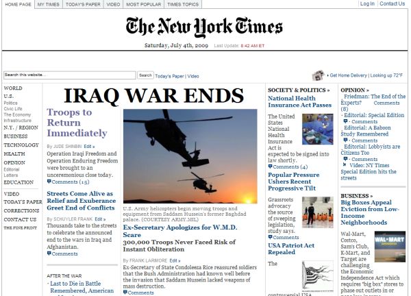 Şi ca farsa să fie şi mai credibilă, ediţia contrafăcută a New York Times beneficia şi de un site: www.nytimes-se.com.