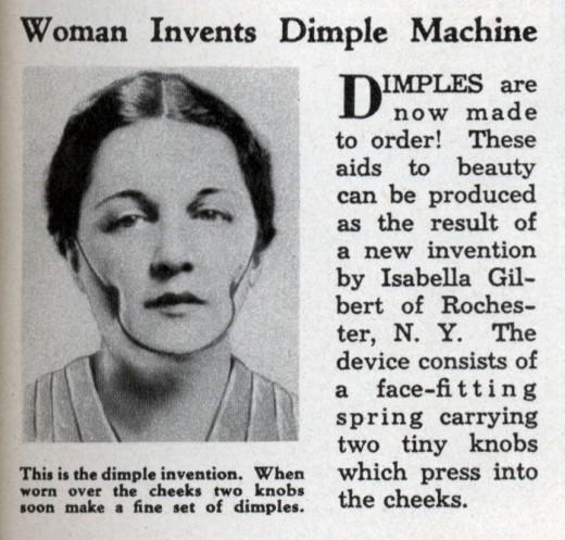 La începutul anilor `30, se pare că femeile aveau o obsesie pentru...gropiţele din obraji. Acest lucru este evident datorită reclamei următoare la un aparat de făcut gropiţe.