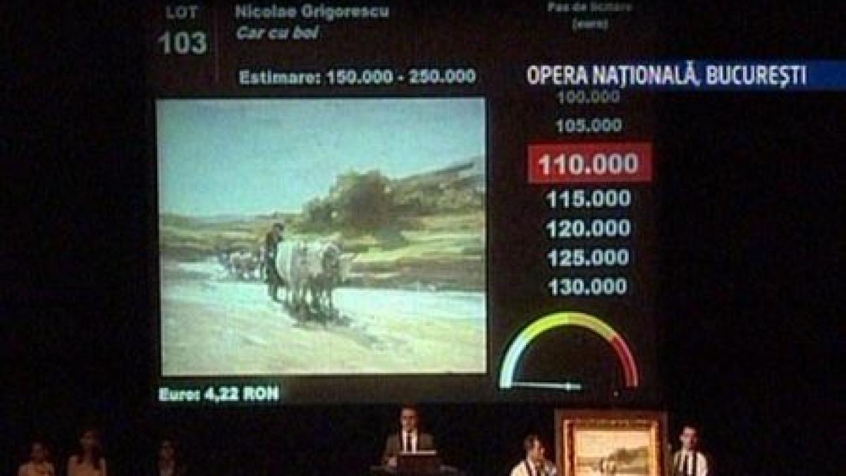 S-a vândut "Car cu boi", celebrul tablou al lui Nicolae Grigorescu. Cel care l-a achiziţionat a achitat 155.000 de euro. Licitaţia a avut loc joi seară la Opera Naţională.