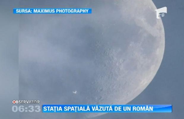 Staţia Spaţială Internaţională pare minusculă faţă de astrul nopţii.
