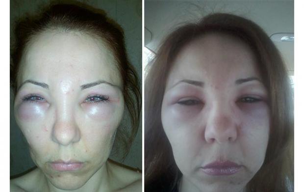După doar câteva minute în timp ce era în maşină în drum spre casă, femeii i s-a făcut rău şi a ajuns la urgenţe cu faţa desfigurată.