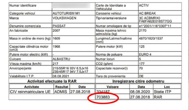„În urmă cu două săptămâni, am făcut ITP-ul, care expira. Am făcut verificarea, iar în baza de date, cei de la ITP au descoperit că maşina a fost înregistrată de RAR în 2018, când mi-am luat eu maşina, cu 700.000 de kilometri. Avea 400.000 de kilometri daţi înapoi.”