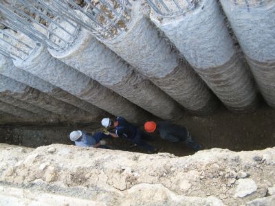 Ora 15.00- Lucrările continuă la pasajul Băneasa. Chiar daca excavatoarele s-au oprit, muncitorii par foarte preocupaţi să sape. Doi ingineri supraveghează lucrările şi dau indicaţii, după ce se consultă între ei.