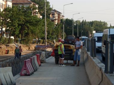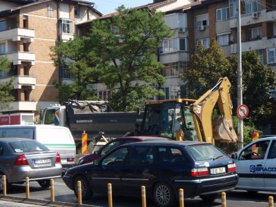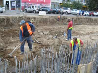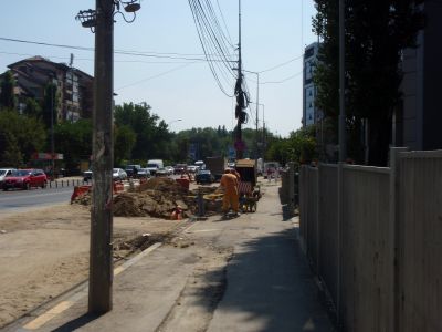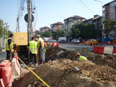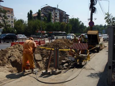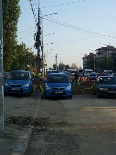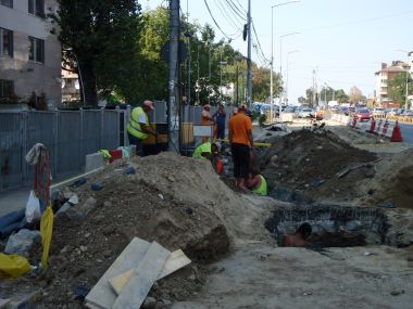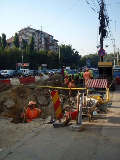 Pe partea celalaltă lucrările par să avanseze. Din cei opt muncitori aflaţi pe şantier, trei lucrează în şanţ, dându-şi realmente interesul.