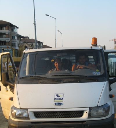 Pentru alţi muncitori, ziua de lucru nu a început încă. Ei preferă să se relaxeze în maşină şi să şicaneze fetele care trec pe stradă. Nu există niciun inginer sau persoană care să-i supravegheze, aşa că oamenii se simt în largul lor. Poate că astfel vor munci mai cu spor.