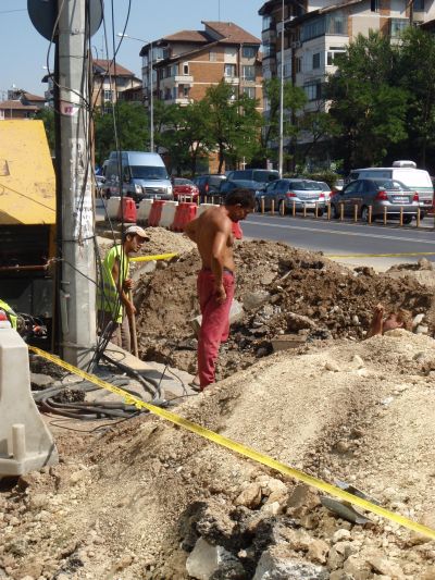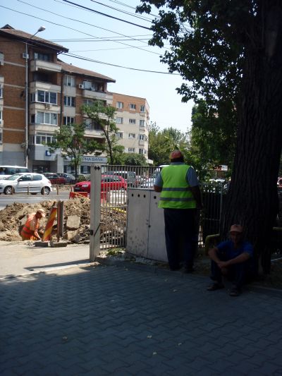 Ora 11.00- Afară sunt 30 de grade, şi cheful de muncă nu pare să mai vină. Sau poate că muncitorii s-au hotărât să "stea" cu rândul.