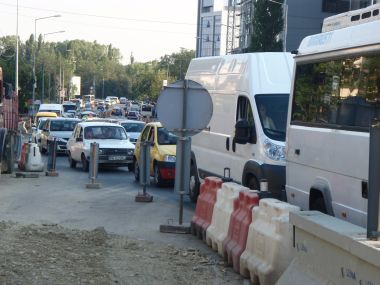 Ora 16.00 - Traficul în zona şantierului este în continuare infernal, dinspre Piaţa Presei Libere spre aeroport.
