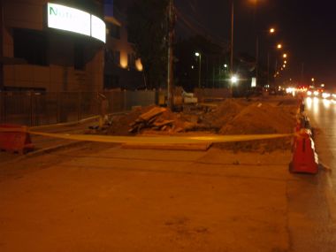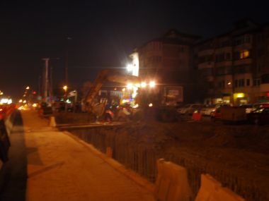 Pe cealaltă parte a drumului însă se poate observa în sfârşit ceva mişcare din partea muncitorilor. Undeva departe se aude un picamer care sapă cam timid în noapte iar unul dintre utilajele care a stat toată ziua a fost pus în funcţiune.