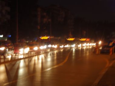 Traficul este în continuare aglomerat dar ceva mai lejer datorită orei târzii, coloanele de automobile fiind acum reduse la jumătatea celor din timpul zilei.